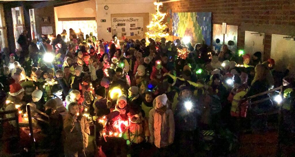 Dank zweier Familien (Familie Grafe und Familie Janzen) können wir auch in diesem Jahr an beiden Standorten wieder einen stimmungsvollen Weihnachtsbaum in der Pausenhalle der Bismarckschule und der Eingangshalle der Servatiusschule aufstellen. Alle Kinder und Kollegen sagen dazu:
