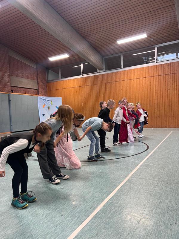 Seit den Osterferien hatten sich die etwa 20 Kinder aus den Klassen 3 und 4 unter Anleitung der Lehrerinnen Sarah Lehmann und Michaela Neunz auf den großen Auftritt vorbereitet. Sprechübungen und Choreografien gehörten ebenso dazu, wie Kostümwahl, Bühnenbild und Stellproben. Die Sonderproben am Nachmittag außerhalb der Schulzeit haben sich gelohnt, waren sich am Ende alle einig. Da verwandelten sich nicht nur ansonsten eher stille, zurückhaltende Kinder in beeindruckende Schauspielertalente.